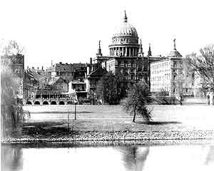 Bild rechts: Blick zum Alten Markt über die Freundschaftsinsel, auf der die Potsdamer nun Gemüse anbauten